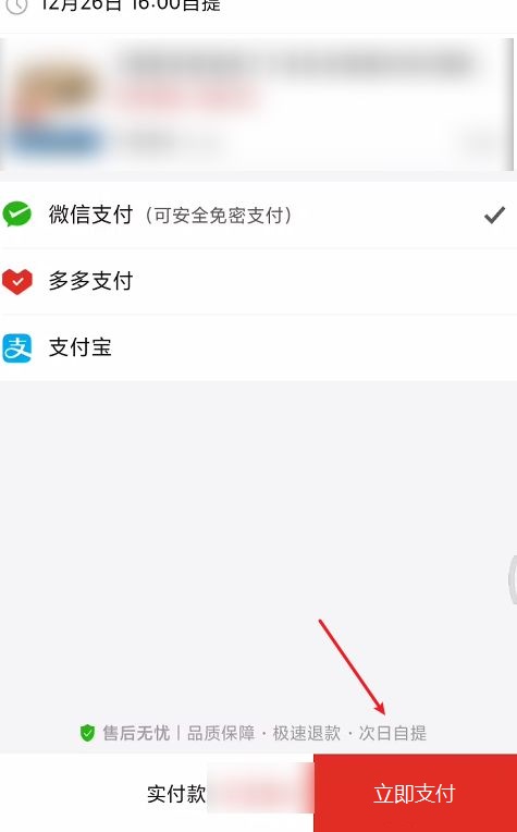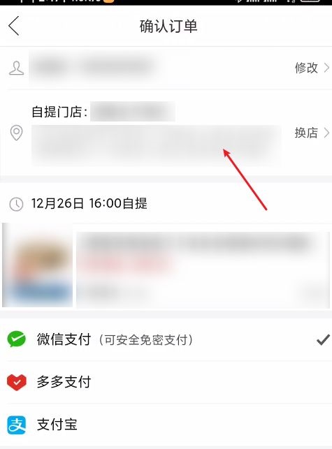 第四步:在确定支付订单页面中,我们需要选择自提门店(如图所示)。
