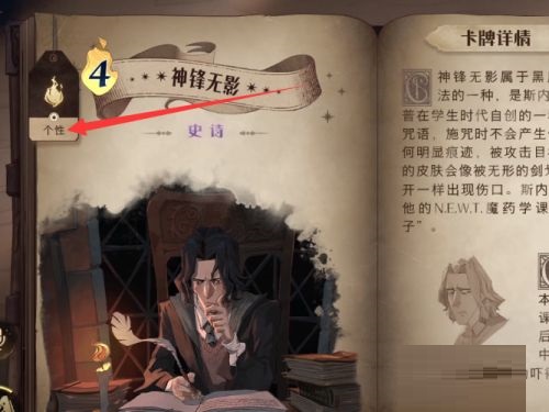 第一步:首先我们打开哈利波特魔法觉醒手游,点击进入卡牌的详情界面,点击左上角的个性(如图所示)。