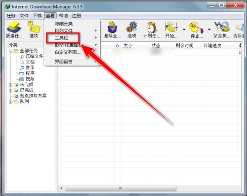 第二步:打开internet download manager(IDM下载器)后,点击菜单栏上的“查看”(如图所示)。