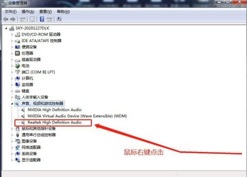 第三步:右键点击“Realtek High Definition Audio”(如图所示)。