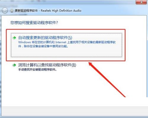 第五步:选择“自动搜索更新的驱动程序软件”(如图所示)。