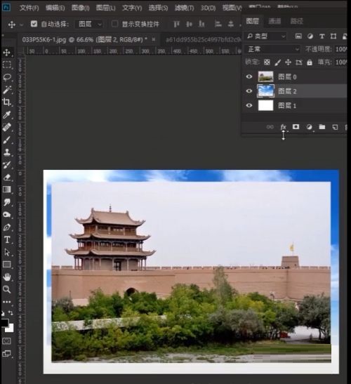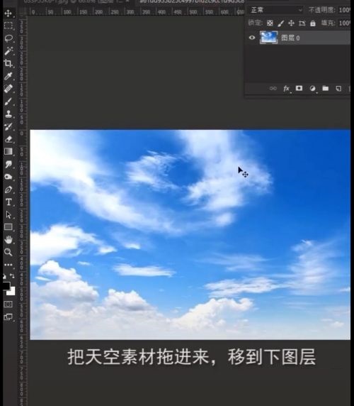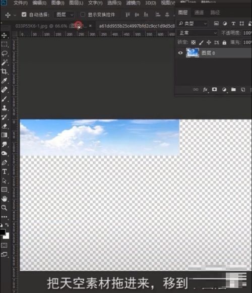 第三步:将天空素材拖进来,移到下图层(如图所示)。
