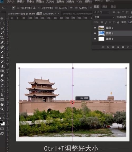 第四步:接着按住CTRL+T调整好大小(如图所示)。