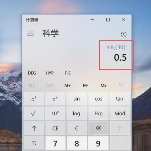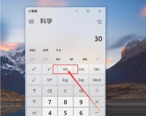 第三步:点击sin标志之后,我们就可以在计算器程序中看到计算结果已经显示出来了,结果为0.5(如图所示)。
