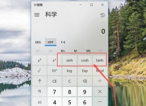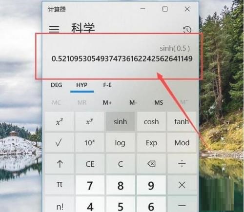 第四步:点击计算器上方的HYP按钮,可以将计算器模式设置为计算双曲线函数(如图所示)。