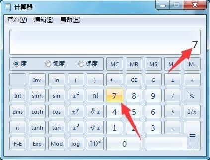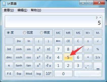 第三步:接下来比如说我们要计算7的5次方根,在界面上点击数字7,在上方计算窗口处就显示出7(如图所示)。