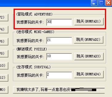 第四步:我们在“冒险模式”,“我想玩的关卡”后面的方框中输入“30”,然后点击它右侧的“跳关”即可。