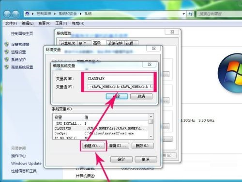 第五步:点击“新建”按钮,新建CLASSPATH系统变量,变量值是“.;%JAVA_HOME%lib;%JAVA_HOME%lib dt.jar;%JAVA_HOME%libtools.jar”(如图所示)。