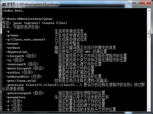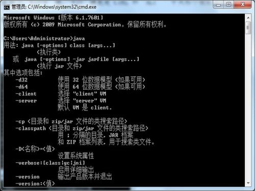 第七步:在命令窗口中,依次输入java,javac,java -version,来测试环境变量设置是否成功,如果成功显示效果如下所示。