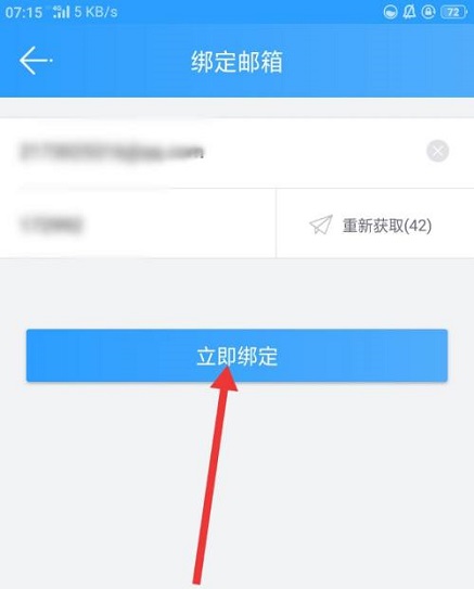第三步:然后我们输入邮箱及其接收到的验证码,再点击立即绑定(如图所示)。