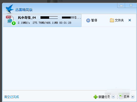 第二步:这样下载的任务就能在迅雷精简版列表中找到了,只需等待下载完成就行了(如图所示)。