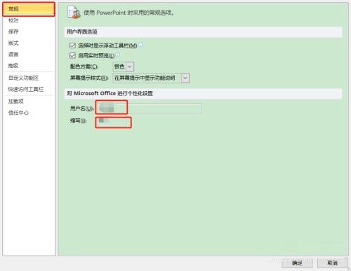 第三步:接着点击<常规>,修改<用户名>、<缩写>(如图所示)。