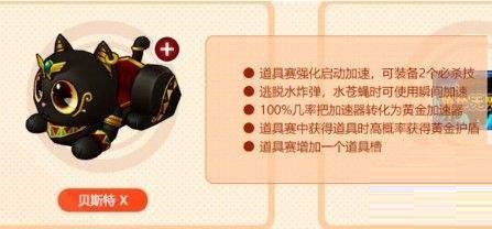 这个赛车效果还是比较有意思的――踩中香蕉皮时可以获得氮气,并且被水炸弹或者水苍蝇命中后可以超迅速脱离!以下就是猫咪车的技介绍: