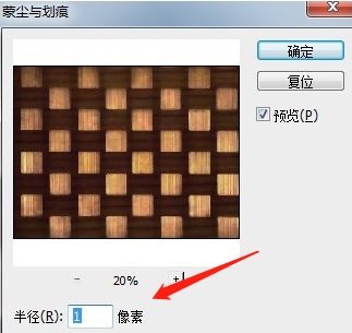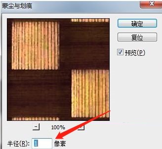 第二步:紧接着我们要做的是在操作以上的步骤之后软件就会自动的弹出一个蒙尘与划痕窗口了,我们就可以在里面进行设置了(如图所示)。