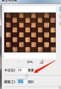 第三步:先是下方百分比数值,那个是缩略图的大小比例。我们直接通过两个加减按键进行调整,之后是下方的半径选项。那个是控制蒙尘和划痕的大小范围选项设置(如图所示)。