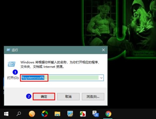 第三步:接着,打开运行窗口之后,输入“%systemroot%”,再点击“确定”(如图所示)。