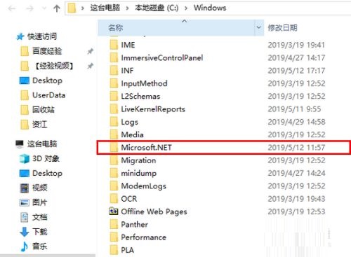 第四步:这时,就会打开当前的系统目录。在这个目录中,点击进入“Microsoft.Net”(如图所示)。