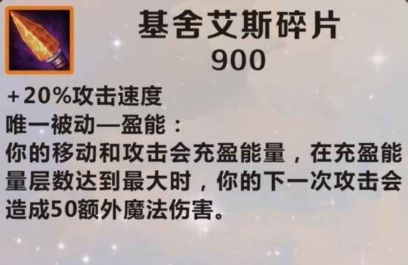 1、基舍艾斯碎片是一件很强的攻速装备,可以用来增加普攻伤害,