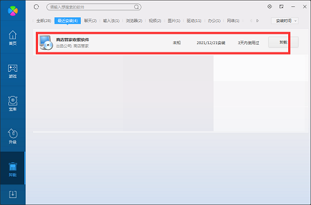 安装并打开电脑管家软件,选择进入软件管理选项,点击卸载选项,在列表中找到零售管家收银管理软件软件,点击卸载即可(如图所示)。