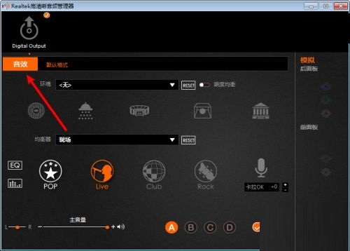 第四步:在Realtek 高清音频管理器上点击音效(如图所示)。