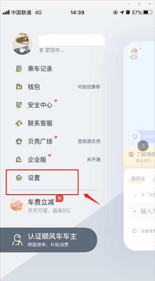 第二步:随后,点击设置按钮,进入嘀嗒出行设置(如图所示)。