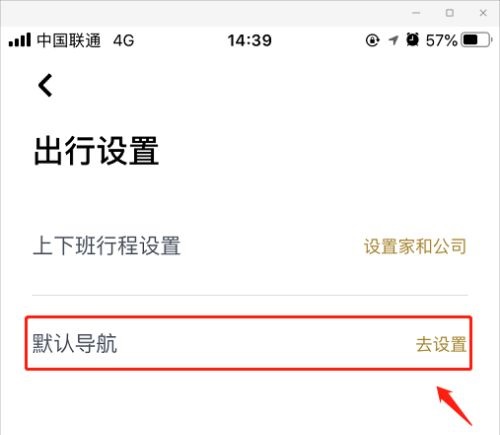 第四步:进入出行设置页面,点击选择默认导航设置,并进入(如图所示)。