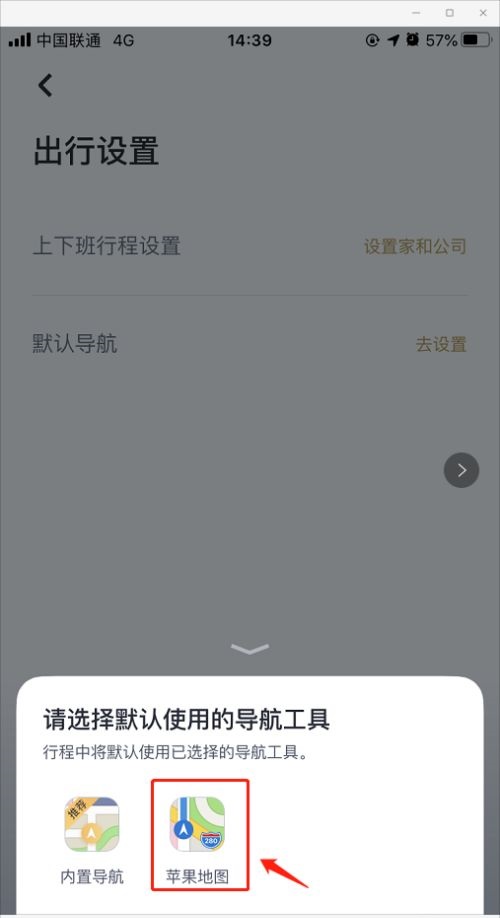 第六步:选择完成后,嘀嗒出行即可成功设置默认导航了(如图所示)。