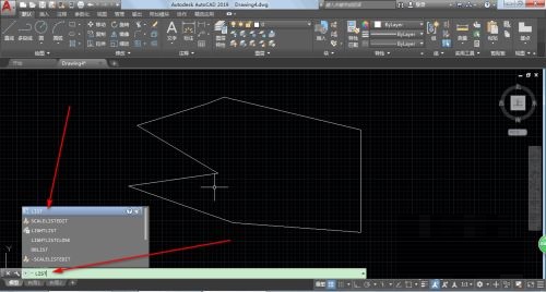 第一步:首先我们创建一个不规则图形,然后直接输入LIST,点击ENTER(如图所示)。