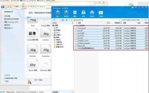 第五步:发票字体下载好后, 打开压缩包,复制这些字体,粘贴安装到电脑中即可,如图所示: