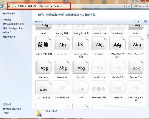 第六步:安装字体方法:点击"我的电脑计算机"->“C盘”->"WINDOWS"->"FONTS",把下载好的字体复制粘贴到电脑中即可。