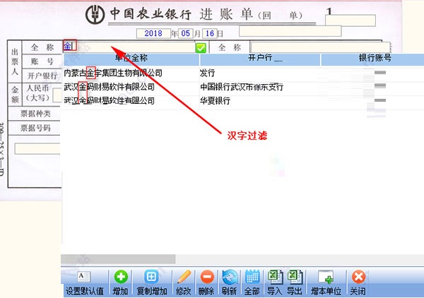 第三步:输入汉字或拼音首字母过滤往来单位(如图所示)。