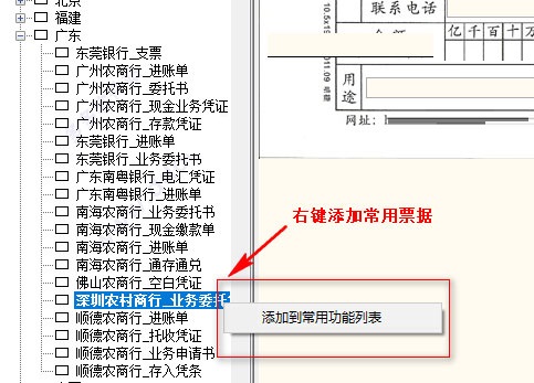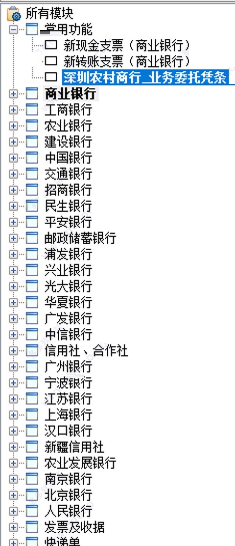第四步:票据丰富,各种银行的常用票据都可以打印,地方票据分类管理(如图所示)。