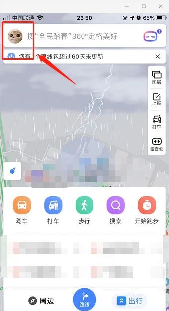 第一步:进入百度地图后,点击个人头像(如图所示)。