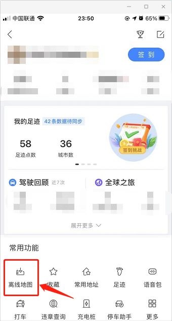 第二步:选择常用功能,点击离线地图选项(如图所示)。