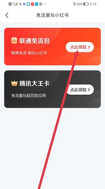 第四步:进入免流量页面,然后点击领取当前的使用的网络。