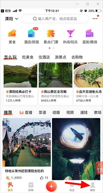 第一步:首先我们打开大众点评app,点击下方我的(如图所示)。