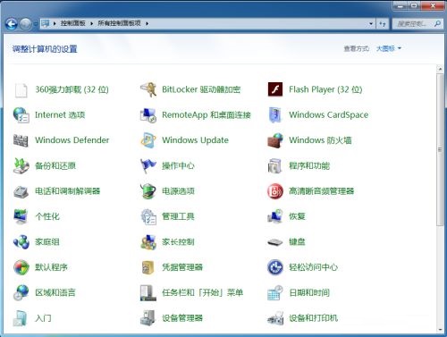 第二步:进入控制面板,可以看到所有控制面板选项(如图所示);