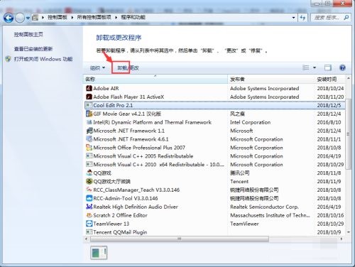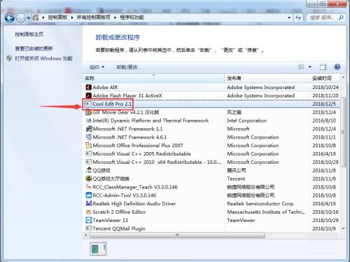 第七步:计算机开始卸载,完成后在程序名称中再也找不到cool edit pro,说明我们卸载成功(如图所示)。