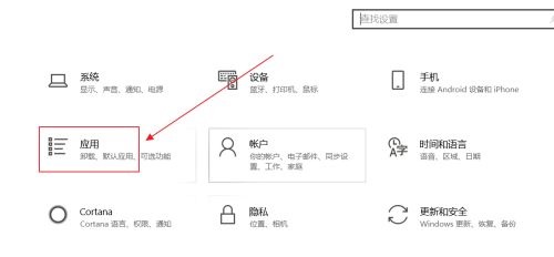 第二步:在设置界面中,点击应用(如图所示)。