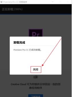 第六步:电脑卸载完软件后会有一个提示,点击关闭Adobe Premiere Pro CC2019就卸载完成了(如图所示)。