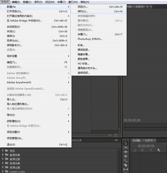 第一步:新建项目与序列(如图所示)。