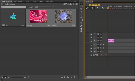 第二步:导入素材,插入到视频轨道(如图所示)。