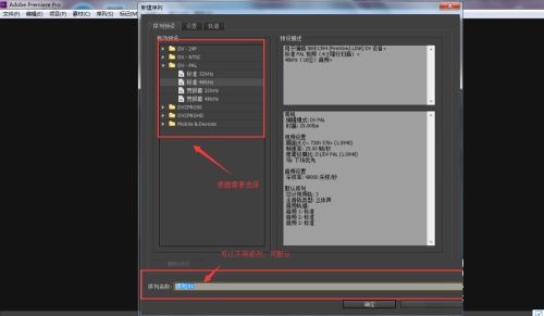 第三步:然后再新建序列,可以根据自身需要设置预设和序列名称(如图所示)。