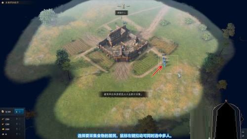 第一步:选择要采集食物的居民,鼠标左键拉动可同时选中多人(如图所示)。