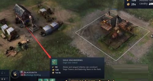 第三步:还可以研究攻城学,可以让步兵和弓箭手在野外建冲车和攻城塔(如图所示)。