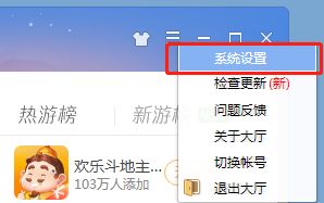 第一步:打开QQ游戏大厅登陆之后,点击右上角的任务栏,并选择系统设置点击进入(如图所示)。