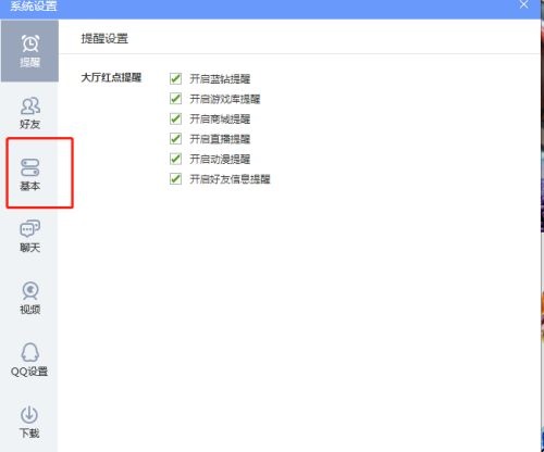 第二步:进入系统设置页面后,点击左侧的基本选项(如图所示)。