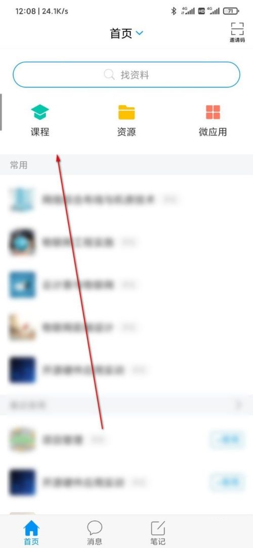 第二步:在页面右上角可以看到课程,点击进入课程(如图所示)。