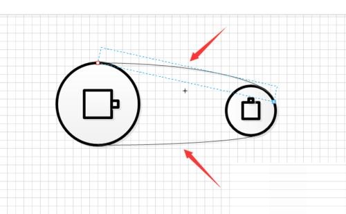 第五步:在上方工具栏中找到“弧线”形状,从上方和下方将两个整体形状连接起来并调整他们的粗细和颜色,如图所示。