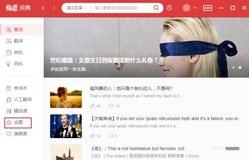 第二步:在词典主界面左边的功能栏内找到“设置”按钮,点击并进入(如图所示)。